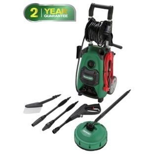 PRODUCT DESCRIPTIONS:This comprehensive and powerful Qualcast 2000W Pressure Washer is ideal for most heavy duty pressure washing tasks. With an impressive 160Bar and 450 litres per hours water flow, it is equipped for the most challenging tasks. It can draw water from an outside tap, filtered water butt or water tank. Features an integrated reel for hose storage. The pressure wahser can be used in either vertical or horizontal working positions. All Qualcast garden power products and pressure washers include a FREE 2 year guarantee when bought from Argos. So whether it is a lawnmower that you use weekly or a hedge trimmer that you use occasionally, you have the peace of mind that with Qualcast, the product is built to last. Supplied with variable pressure lance, a spiral lance for stubborn dirt, a rotary brush for more delicate painted surfaces, a fixed wash brush and a patio cleaner, this pressure washer is well equipped for the majority of cleaning tasks. The Qualcast 2000W pressure washer is easy to manoeuvre around objects either in horizontal or upright position. Supplied with a 7m water hose and 7m cable, it extents your work reach to an impressive 14m. Model number: Q1W-SP15-1900. Pressure washer features: 2000 watt universal motor. Flow rate 330 litres/hour. Rated bar - 110. Suitable for medium to heavy tasks. 7m hose. 7m mains cable. Wheeled for ease of use. Maximum temperature of 40°C. Accessories included: Standard lance. Extension lance. Dirtblaster lance - provides a concentrated blast of power to remove dirt. Pressure adjustable lance - allows you to alter the level of water pressure to suit the task. Car wash brush. Wash brush for long life operation. Quick connector. Patio cleaner. Low pressure detergent gun. On board tank. On board storage. Weight 13kg. Manufacturer's 2 year guarantee.