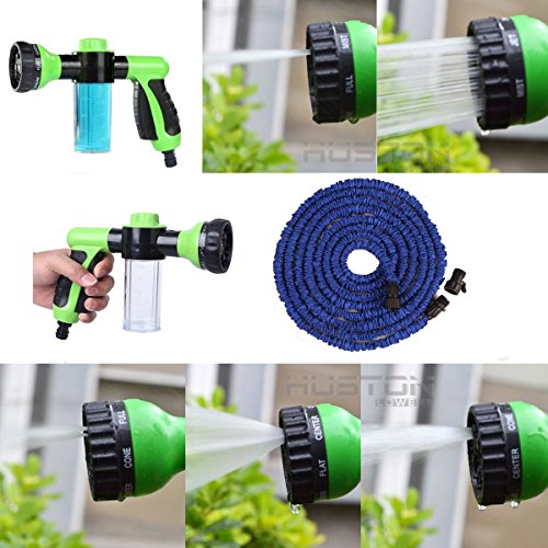 100% Natural Latex - TOP QUALITY - VARIABLE 7 SETTING HIGH VOLUME SPRAY - Expandable No Kink Garden Hose Pipe
