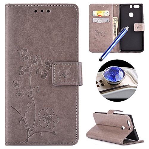 Where To Buy Huawei P9 Plus Flower Case,Huawei P9 Plus Floral Case,Etsue Pretty Pressed Flower Pu Leather Bookstyle Wallet Flip Case Cover with Stand and Card Slots for Huawei P9 Plus+Blue Stylus Pen+Bling Glitter Diamond Dust Plug(Colors Random)-Flower,Grey Online