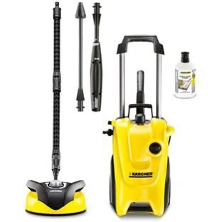 PRODUCT DESCRIPTIONS:The K4 compact pressure washer is perfect for occasional use on moderate dirt. This karcher pressure washer is perfect for those with limited storage yet still want an impressive cleaning performance. The home kit includes a T350 patio cleaner and 1ltr bottle of stone cleaner. Small compact design with the capabilities of a karcher k4 machine. Model number: 1.637-313.0. Pressure washer features: Water-cooled induction motor. Flow rate 420 litres/hour. Rated bar - 130. Suitable for light to medium duty tasks. 6m hose. 5m mains cable. Wheeled for ease of use. Accessories included: Standard lance. Extension lance. Dirtblaster lance - provides a concentrated blast of power to remove dirt. Pressure adjustable lance - allows you to alter the level of water pressure to suit the task. Quick connector. Patio cleaner. Detergent. Suction tube. On board storage. Weight 10.7kg. Manufacturer's 3 year guarantee.