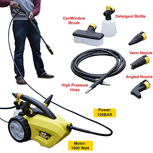 Buy New Wolf Sky Blaster 1500 watt Motor 105 BAR Power Washer Car Brush Turbo, Vario, Angled Nozzle Detergent Bottle - The 10 Best Product Reviews Ever